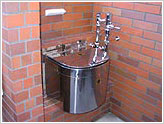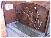 ワンコはアスファルトの道路より草の生えた土が好き。当然汚れもバイ菌も付いてきます。給湯設備のあるあんよシャワーブースには水飲み場もあるのでお水を飲んでいる間にあんよが洗えます。 |
