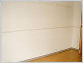 壁見切り材でクロスを上下に分け、傷が付きがちな下半分だけを張り替えることができます。