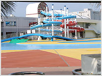 夏はプール。1周300mの流水プールやスライダープールが人気です。